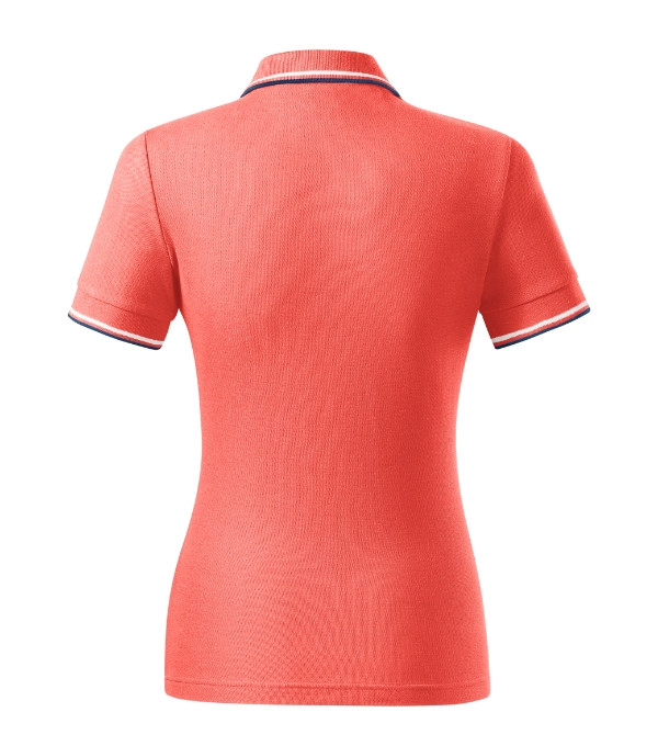 Malfini Focus - Ujjszegélyen és a galléron kontraszt csíkozású, szűkített szabású női galléros póló - Coral - XS