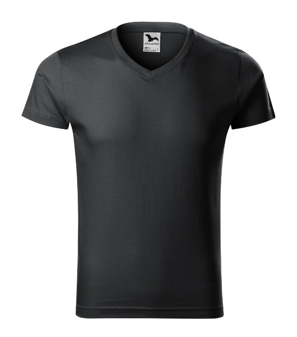 Malfini Slim Fit V-neck - V nyakú, testhezálló szabású férfi póló - Ébenszürke - 3XL